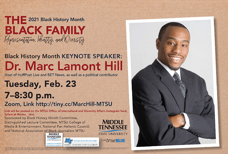 A prominent African American journalist, academic and activist will provide MTSU’s 2021 Black History Month keynote address. Dr. Marc Lamont Hill, the Steve Charles Professor..