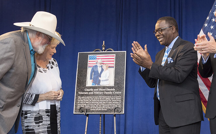 MTSU’s new Veterans and Military Family Center will be named for legendary country music entertainer Charlie Daniels and his wife, Hazel, President Sidney A. McPhee..
